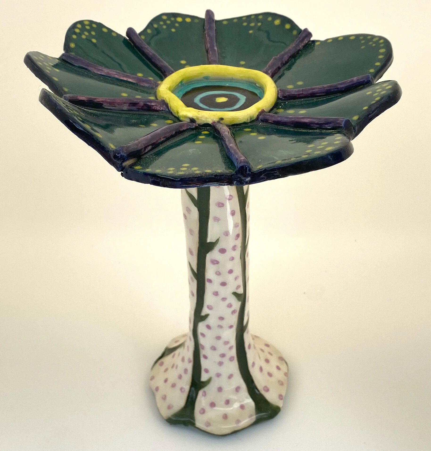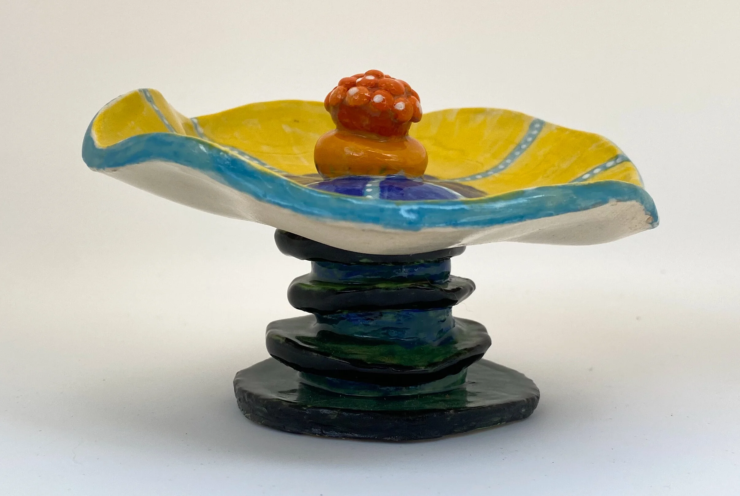 Yellow Plate Flower with Tiered Stem, 2021. 2 x 5 x 5 in.