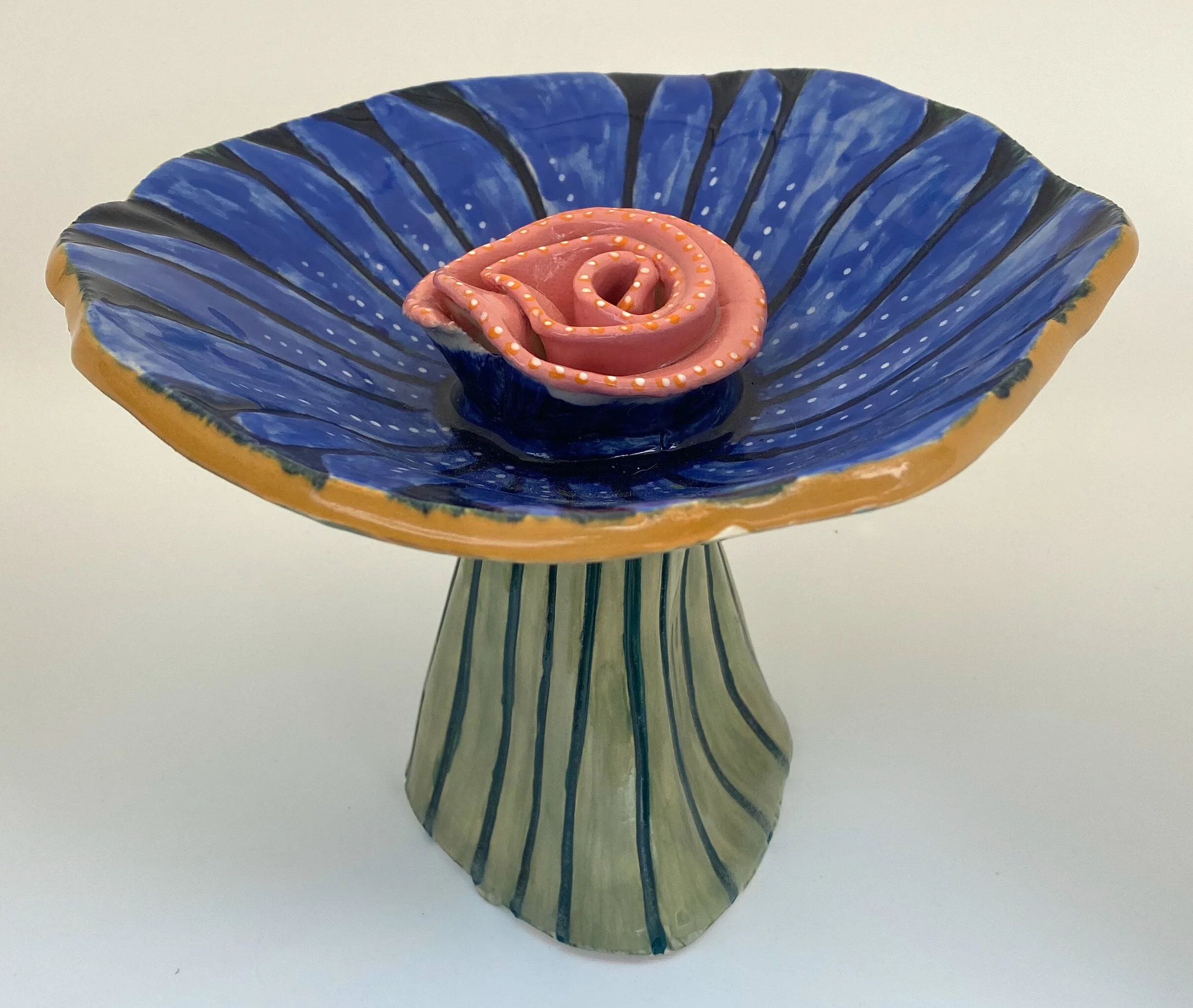 Blue Plate Flower with Pink Center, 2021. 5 x 7 x 7 in.